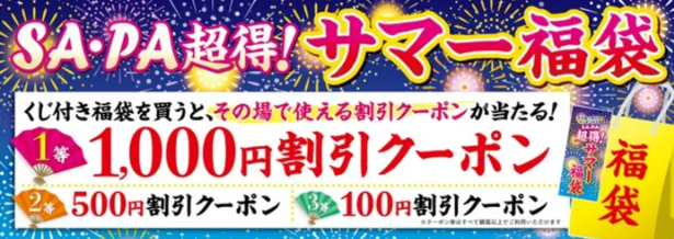 SA・PA139箇所で、その場で使えるクーポン券が必ず当たる「くじ」が付いた福袋を合計 1万3,000個ご用意し、販売